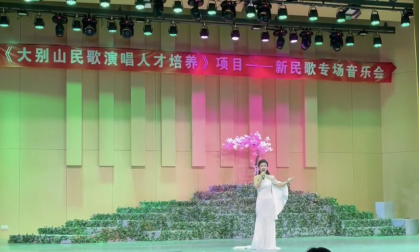 该项目以最高标准执行国家艺术基金计划,科学设置民歌培训课程,以“一对一”授课指导为主,将表演实践与声乐演唱技巧相结合,培养传承大别山民歌文化和演唱艺术的专业人才。公共艺术中心教师赵怡冰在2021年12月接到录取通知以来,积极准备,认真学习,在一个月的脱产培训中,跟随专家指导按时完成专业任务,不断探索和实践民歌创新性发展与传承途径,以皖西南歌曲《泼脱我几多好山歌》、河南民歌《放风筝》分别参加“新民歌专场音乐会”和“传统民歌专场音乐会”,圆满完成学习项目。