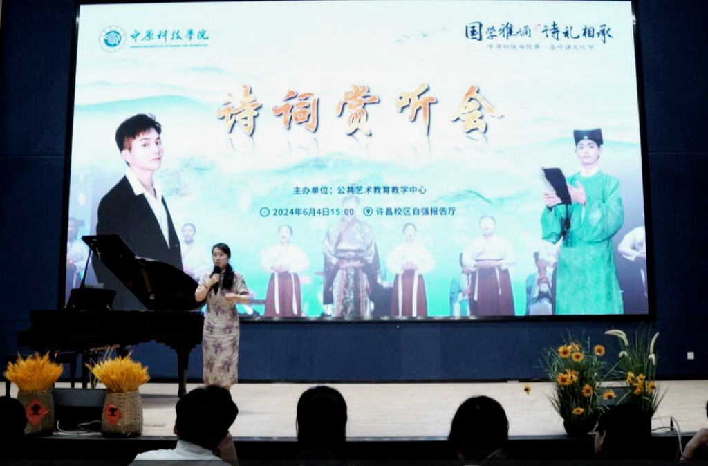 2024年6月4日下午3时,教育艺术学部公共艺术教育教学中心在许昌校区自强报告厅成功举办了首届吟诵文化节系列活动之“诗词赏听会”,为500余名师生带来了一场极具特色的文化盛宴。