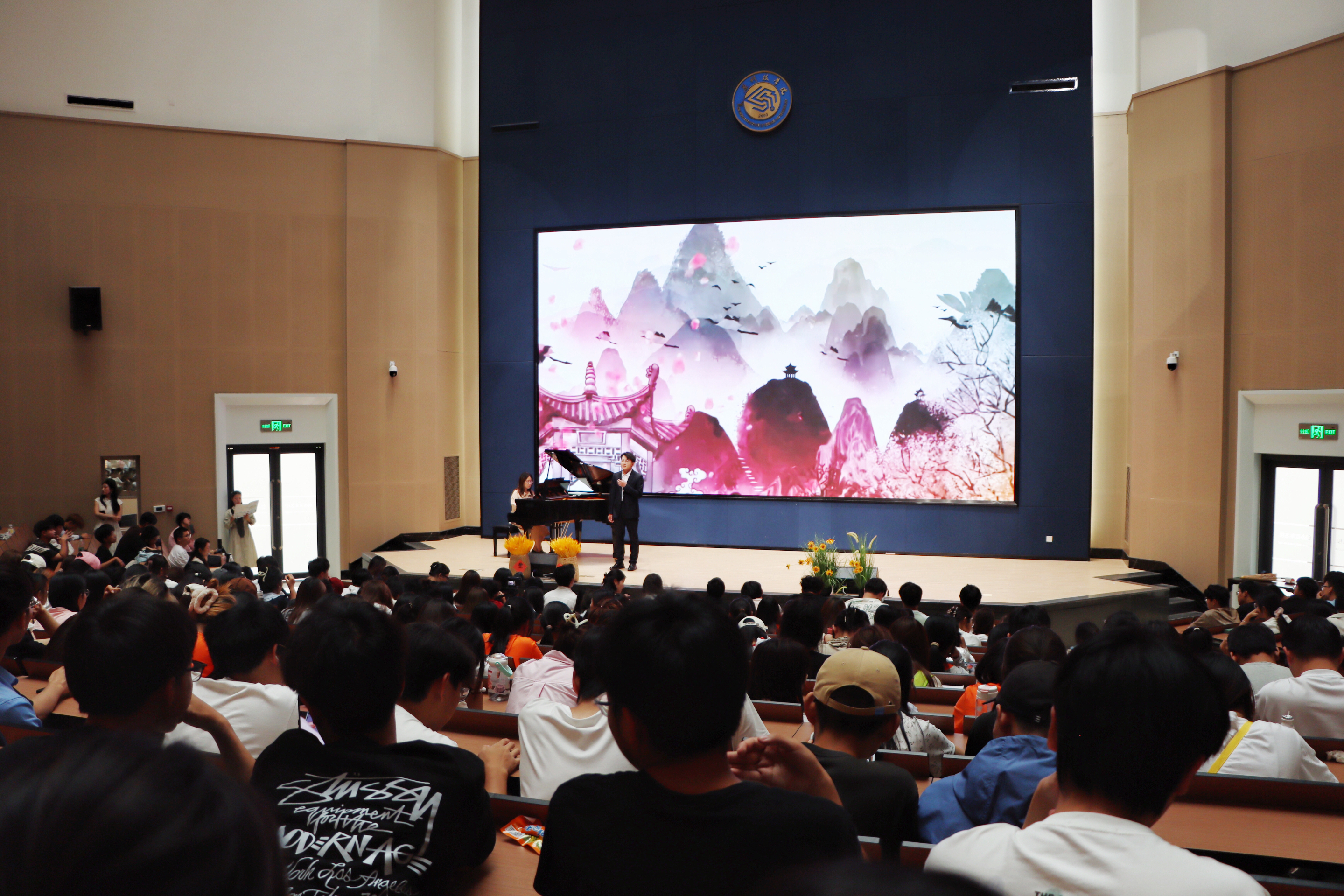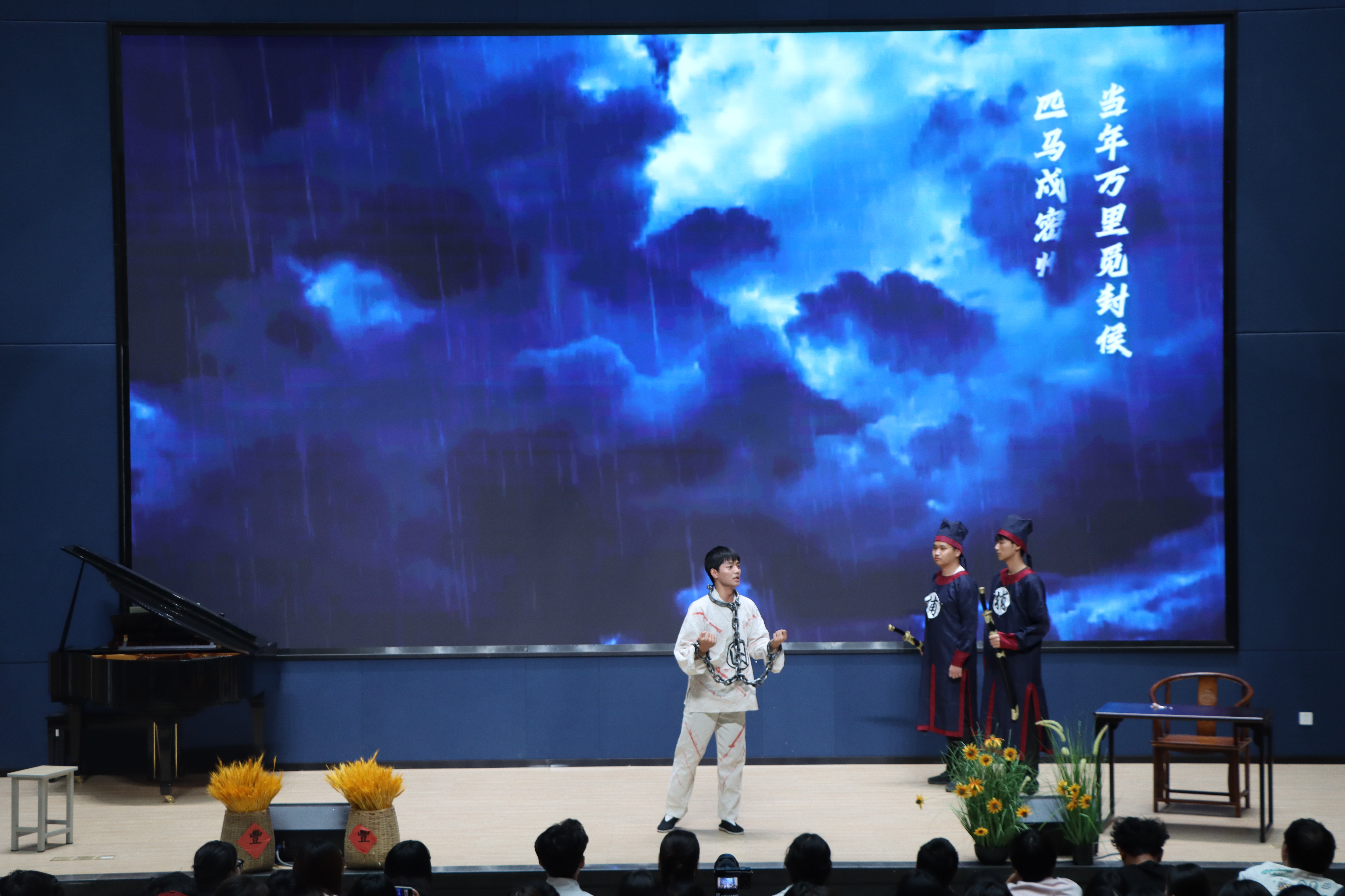 诗词赏听会节目精彩纷呈,分为“风雅颂吟”和“古韵新声”两个篇章。校吟诵团在第一篇章中带来《星辰心梦·东坡传》(选段)、《水调歌头》等原创吟诵作品,尽显中华诗词的古典韵味;第二篇章则通过《关雎》、《念奴娇·赤壁怀古》等曲目,完美呈现了古诗词与现代技法的融合之美。演员们以饱满的热情和专业的表演,赢得了在场师生的阵阵掌声。此次诗词赏听会的形式和内容均受到在场师生的广泛好评,学生认为这样的音乐会有互动、有引导、有现场、有氛围,拉近了舞台和听众的距离,融合了表演与聆听的情感。