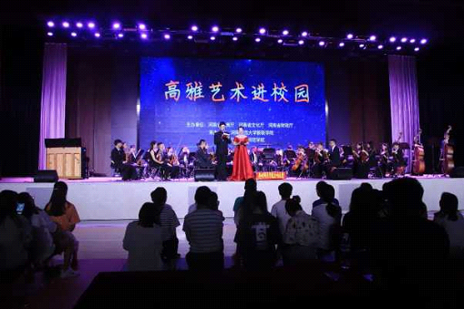为营造良好的校园文化环境氛围,提高广大师生艺术修养和文化素质,6月10日晚,郑州师范学院“高雅艺术进校园”走进新联专场活动演出在我校健行馆举办。本次演出由河南省教育厅、河南省文化厅、河南省财政厅主办,河南师范大学新联学院承办,郑州师范学院演出。郑州师范学院音乐与舞蹈学院党总支书记王宏和副院长王艳霞,河南师范大学新联学院党政办公室主任茹佳佳,艺术学院副院长张澎、副院长宋丽娜,艺术学院党总支书记陈诚,学生工作科科长周云剑出席本次活动。