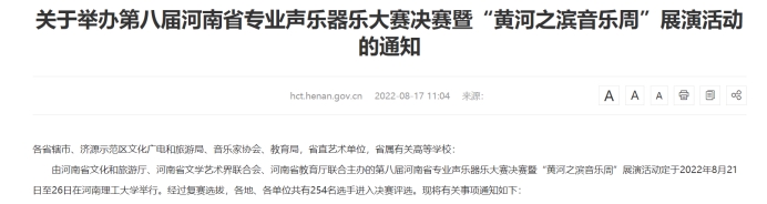 近日,我省第八届河南省专业声乐器乐大赛决赛暨“黄河之滨音乐周”展演活动公布决赛通知,公共艺术教育教学中心教师赵怡冰顺利进入决赛。