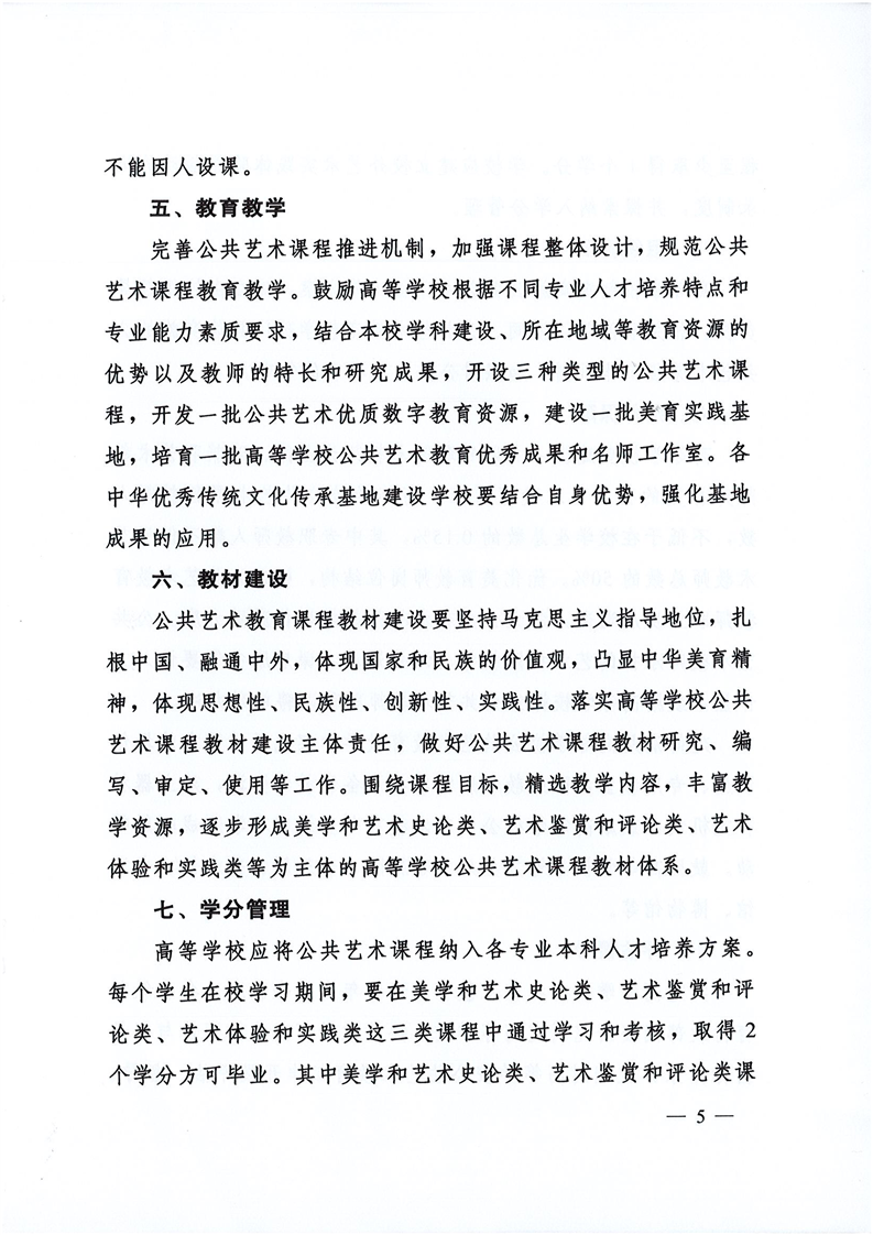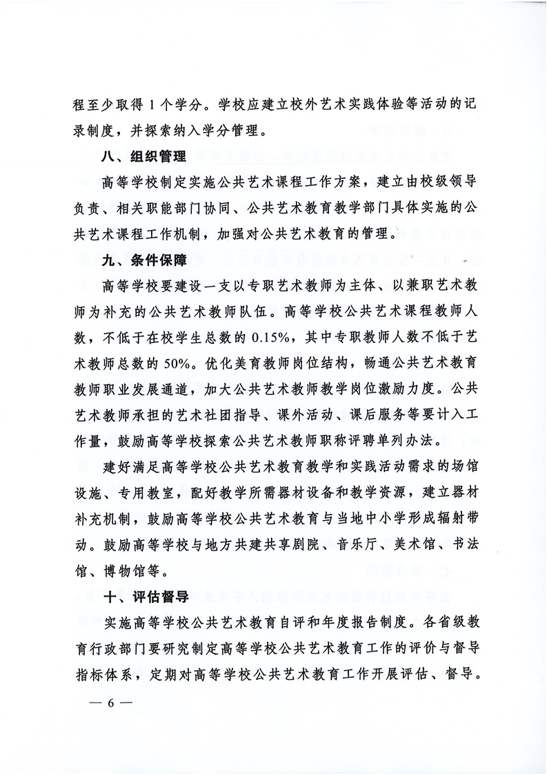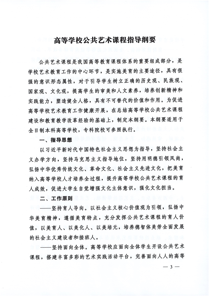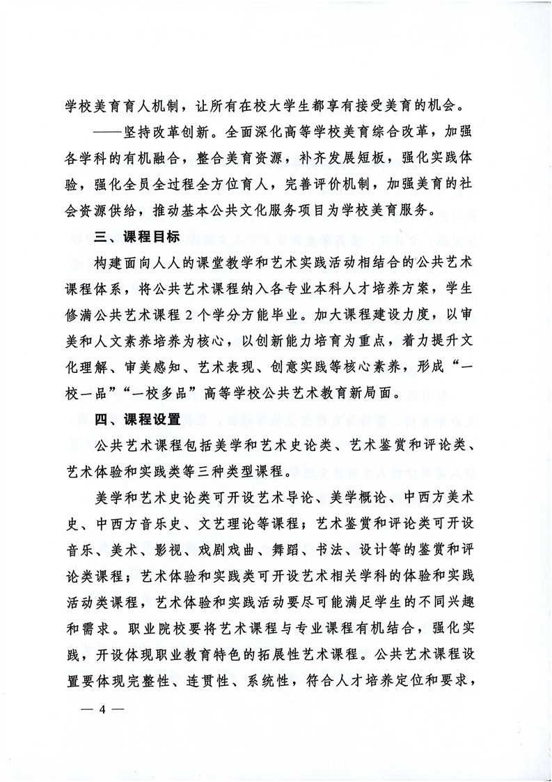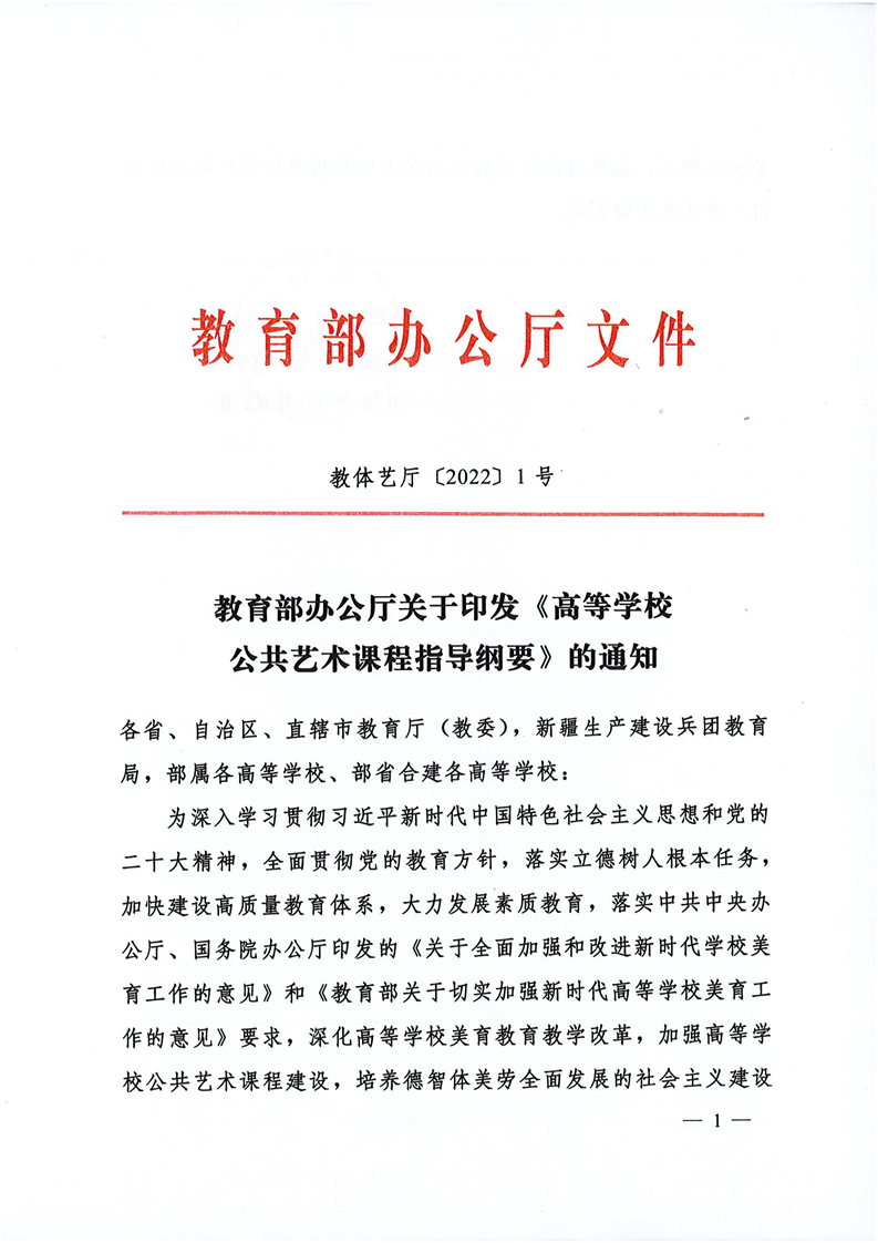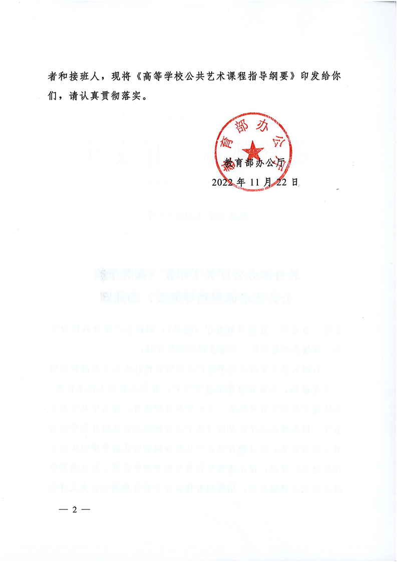 教育部办公厅关于印发《高等学校公共艺术课程指导纲要》的通知