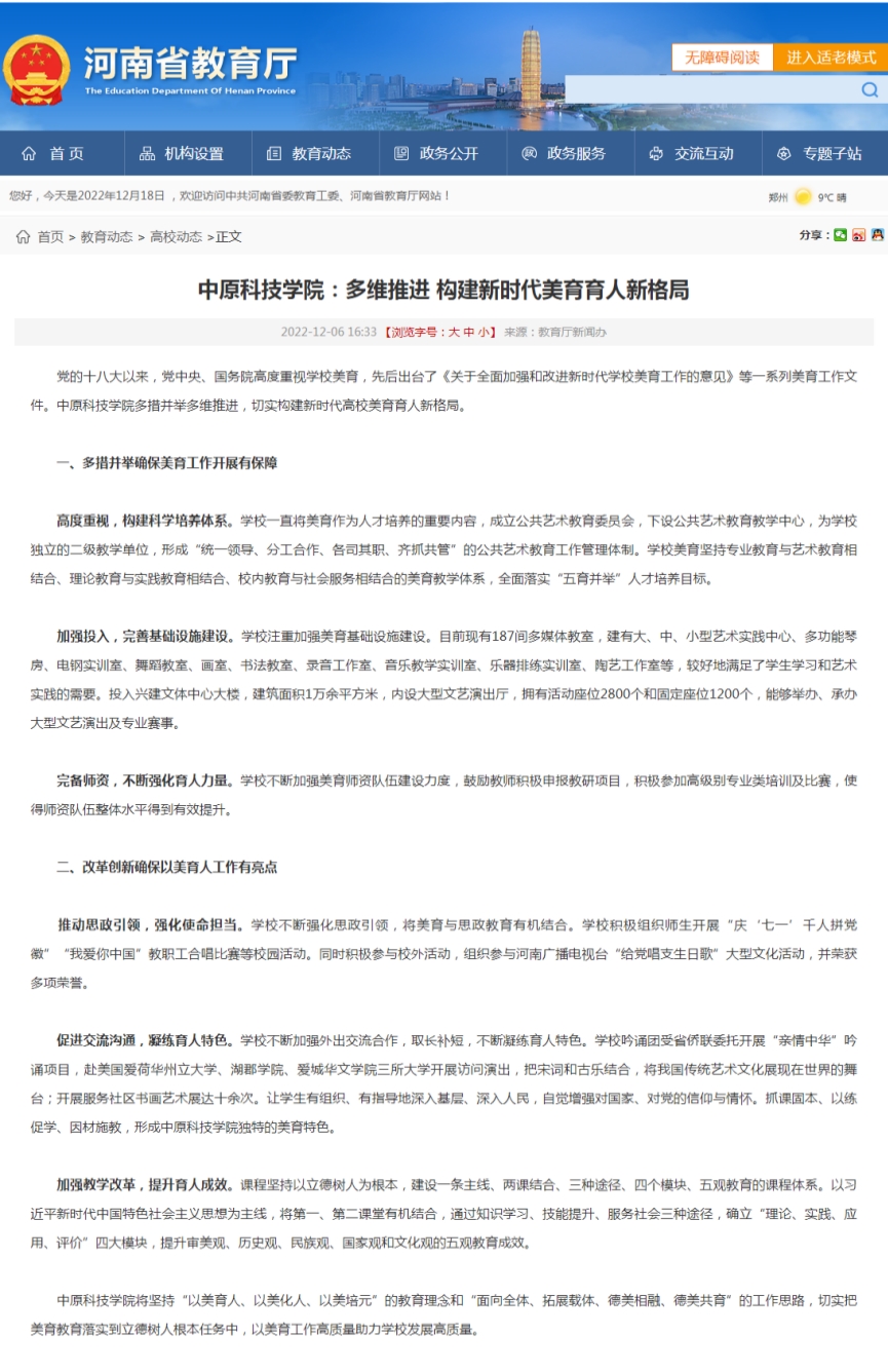 【河南省教育厅】中原科技学院:多维推进 构建新时代美育育人新格局