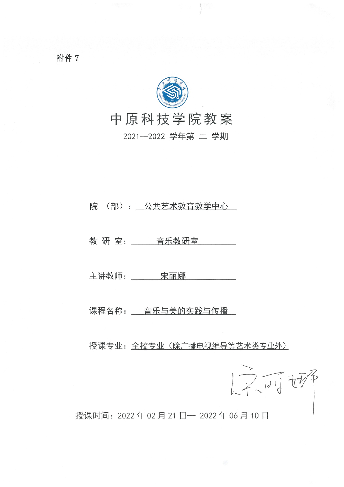 第三批河南省一流本科课程《音乐美的实践与传播》教案