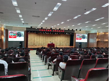为进一步推进学习贯彻习近平新时代中国特色社会主义思想主题教育,5月18日19:30,马克思主义学院党总支书记、副院长朱媛在学术报告厅以“弘扬延安精神 汲取奋进力量”为题讲授专题党课。马克思主义学院支部书记、院长助理赵利娟主持,马克思主义学院党总支全体党员教师和学生代表共300百余人参加。