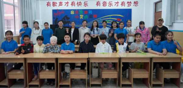 2023年5月29日,中原科技学院公共艺术教育教学中心主任宋丽娜带领音乐教研室教师、省级一流本科课程教师团队和音乐特长学生一行来到商丘特殊教育学校,开展美育社会服务实践活动。参加活动的有该校校长赵凤英,“出彩河南人”最美教师潘家贺与商丘市特殊教育学校“苔花合唱团”40余名学生。