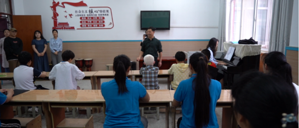 本次活动通过前期与该校的沟通交流,以美育浸润心灵为主题进行音乐实践活动。第一阶段,由教师赵怡冰、20级财务管理专业学生安培毓、22级计算机科学与技术专业学生魏国祥带来的表演节目,并与在场学生充分互动,营造了在音乐中和谐美好的氛围;第二阶段,我校教师对该校葫芦丝、埙社团的学生表演进行了一对一的交流指导,宋丽娜主任为“苔花合唱团”伴奏,两校师生共同演唱童声合唱作品《萱草花》,通过音乐和特殊群体学生搭建起心灵互通的桥梁,传递了音乐艺术带来的美与幸福。第三阶段,在与该校师生交流座谈中,宋丽娜主任首先鼓励孩子们要好好学习多种技艺,勤学苦练,建立自信,为成长就业打下坚实基础,接着对孩子们的表现给予充分地赞许和肯定,并且带去此次活动团队成员个人出资向该校捐赠的3000余张盲文纸。