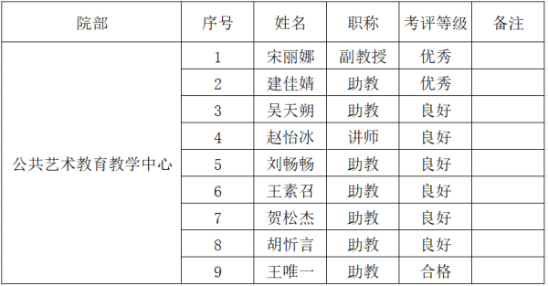 根据《公共艺术教育教学中心专任教师教学质量考评标准》,坚持公开、公平、公正的原则,现将本学期教学质量考评结果公示如下: